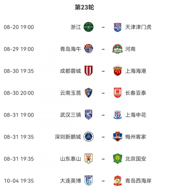 而另一场比赛,原定于8月30日进行的大连英博主场对青岛西海岸的比赛,被改期至10月4日进行。