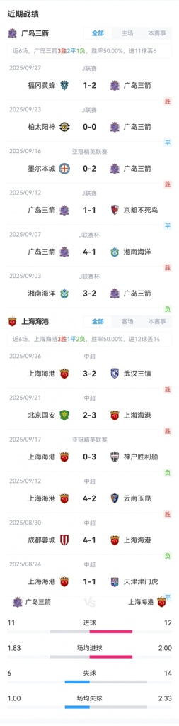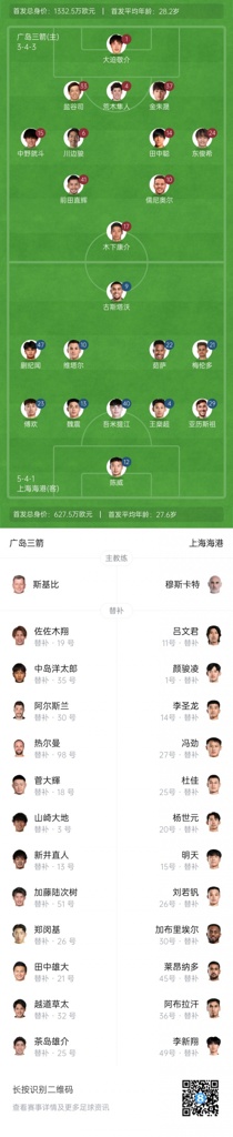 上海海港首战0-3失利排名东亚区垫底,广岛三箭首战2-0取胜排名东亚区第2。
